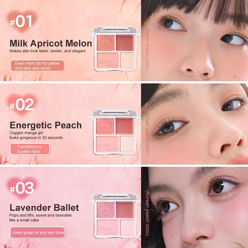 Dual-Function Design for a Stunning Look: This 2 - in1 Blush Highlight Palette ingeniously combines blushand highlight within a single compact. lt streamlinesyour makeup routine, unleashes your creativity, andserves as the ultimate shortcut to effortless beauty.