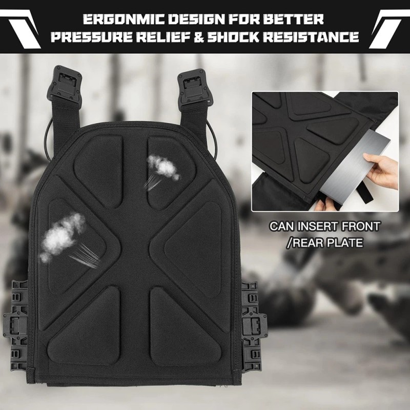 š§°ćHigh QualityćThe black tactical plate carrier is made of 1200D nylon fabric, which is extremely abrasion-resistant, so you don't have to worry about wear and tear damage. The shoulder and waist magnetic buckle can reach 1300N & 2000N above the weighing strength, more firmly. The military vest tactical are fully padded with breathable and long-lasting material, which are comfortable and keep you cool by allowing air circulation