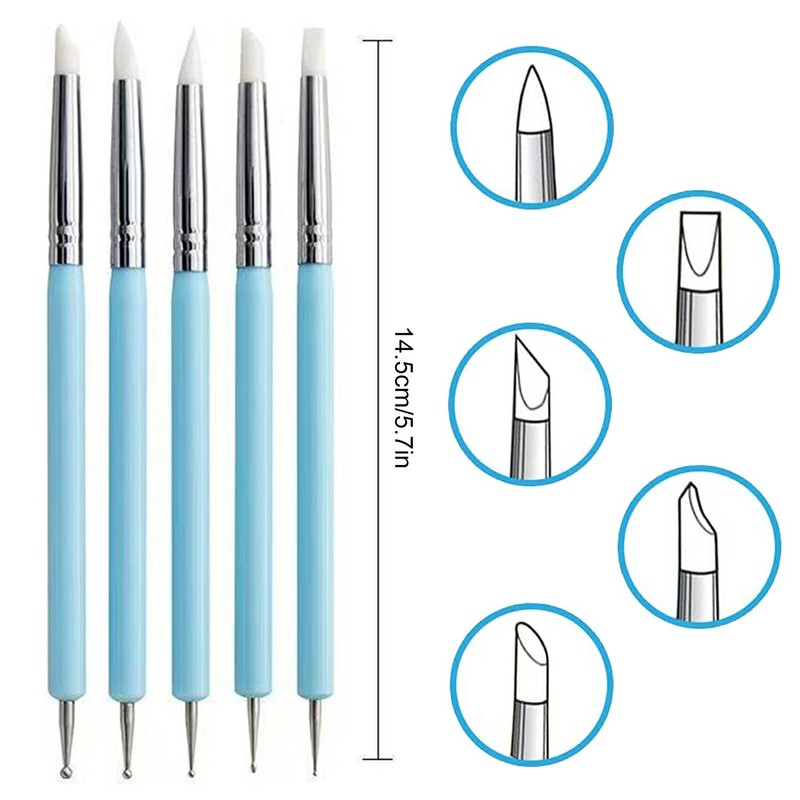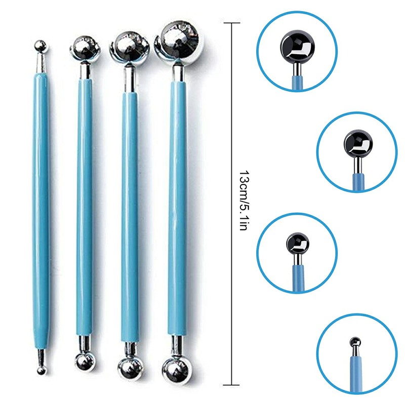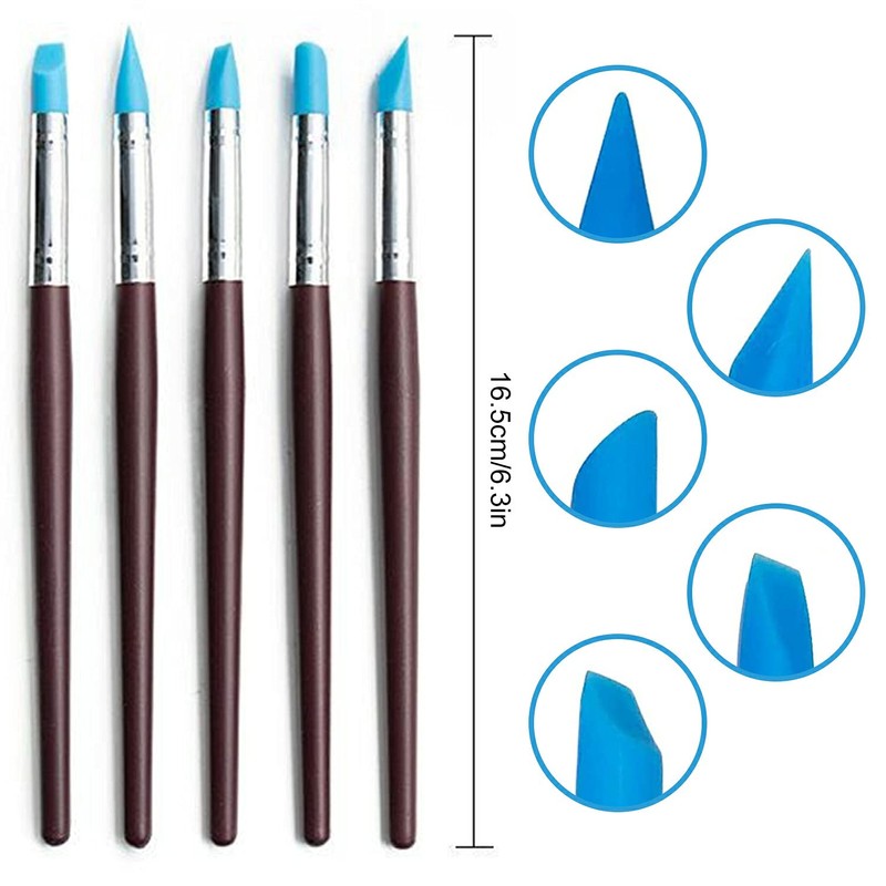 Juego de 14 herramientas para esculpir arcilla 10 pinceles de goma y silicona y 4 bolas de arcilla polimérica kit de herramientas de doble punta (14)
