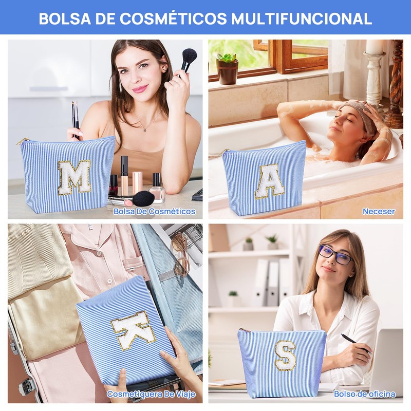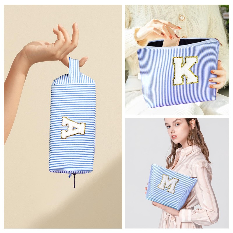 Juego de 2 piezas Neceser Mujer para el Maquillaje - Alfabeto de la Cosmetiquera Para Maquillaje, Tela Duradera Estuche de Maquillaje, Ideal Festival de Regalo para Monther, Hija, Novia (A, azul)
