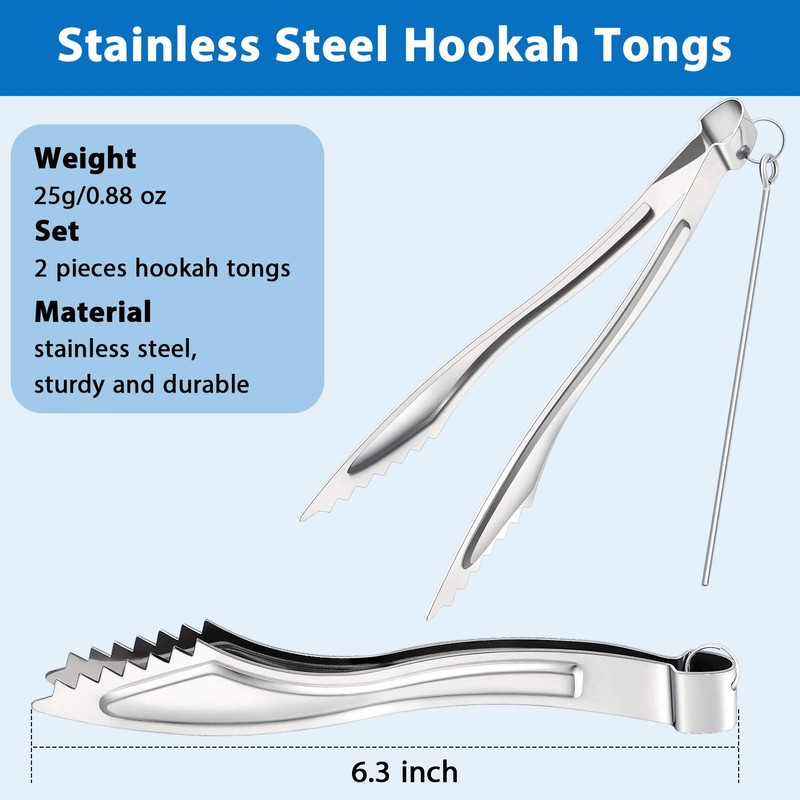- Lo que obtienes: el paquete incluye 2 paquetes de pinzas de acero inoxidable para cachimba con atizador, conveniente para su uso diario y reemplazo, cada pinza para carbón de cachimba es de aproximadamente 16 cm de largo, ligero y ocupa poco espacio.