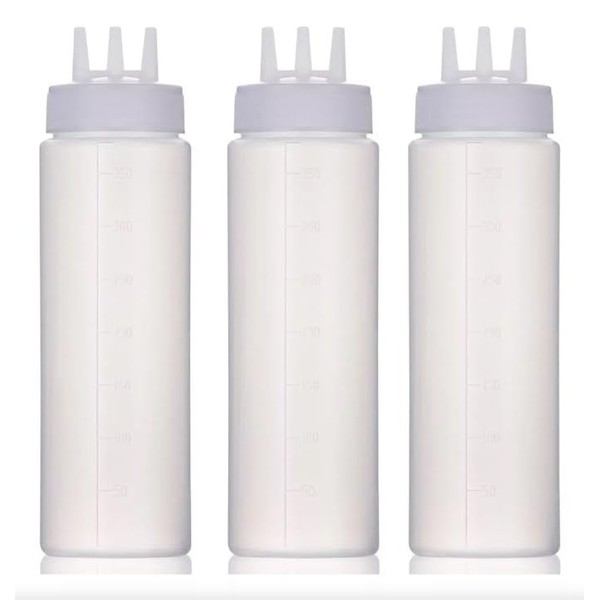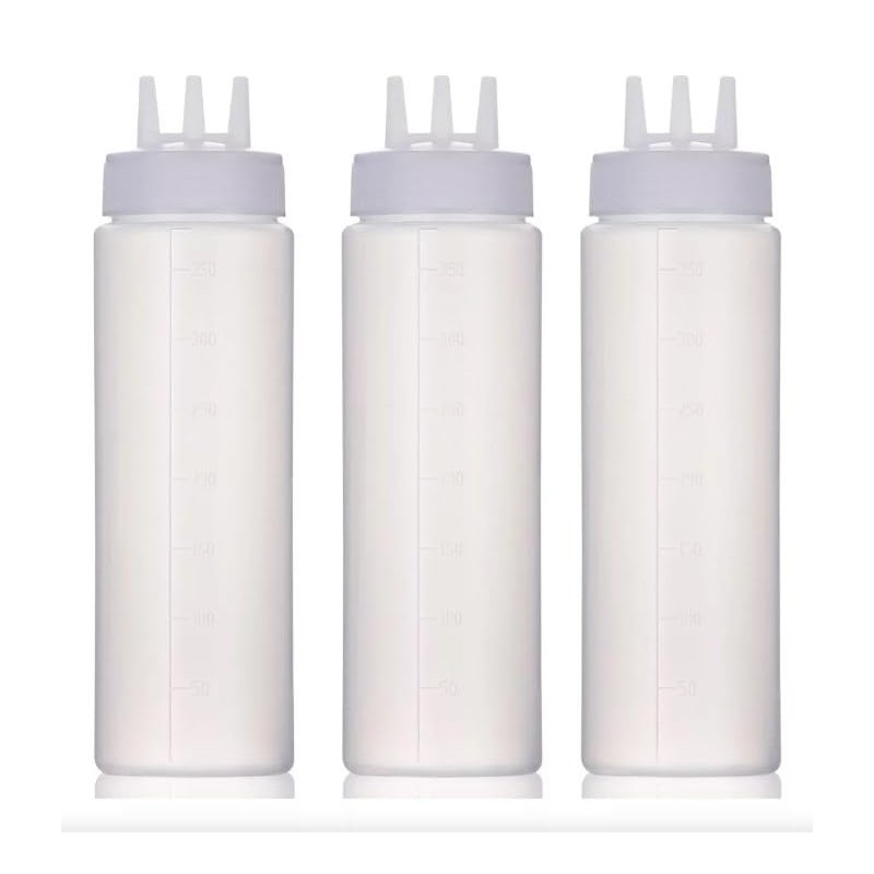 Juego de 3 Botellas de Plástico con 3 Agujeros para Condimentos, Salsas, Aceite, Vinagre, 20CM (370ML-3 Agujeros)