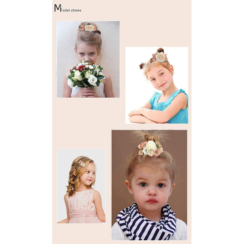 - { Comfortable & Soft Materil } Purely handmade with clips fabrics and artificial flower which glued with a light pink pin. Durable and Comfortable.The fully lined clip can effectively protect the girl's hair and skin.Keep the perfect hair decoration be to the mobeautiful baby girls.