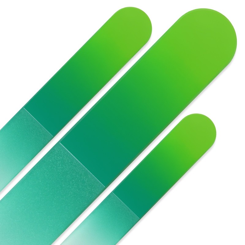 Juego de 3 limas de uñas de vidrio en bolsa de terciopelo, colores arcoíris, auténtico vidrio templado checo, garantía de por vida, hecho a mano en la República Checa, Verde Fern
