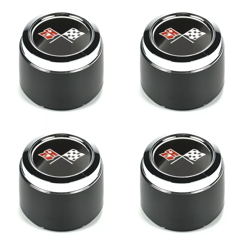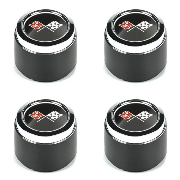 Juego de 4 tapas centrales de aluminio Corvette compatibles con Corvette 1973-1982 (negro plateado)