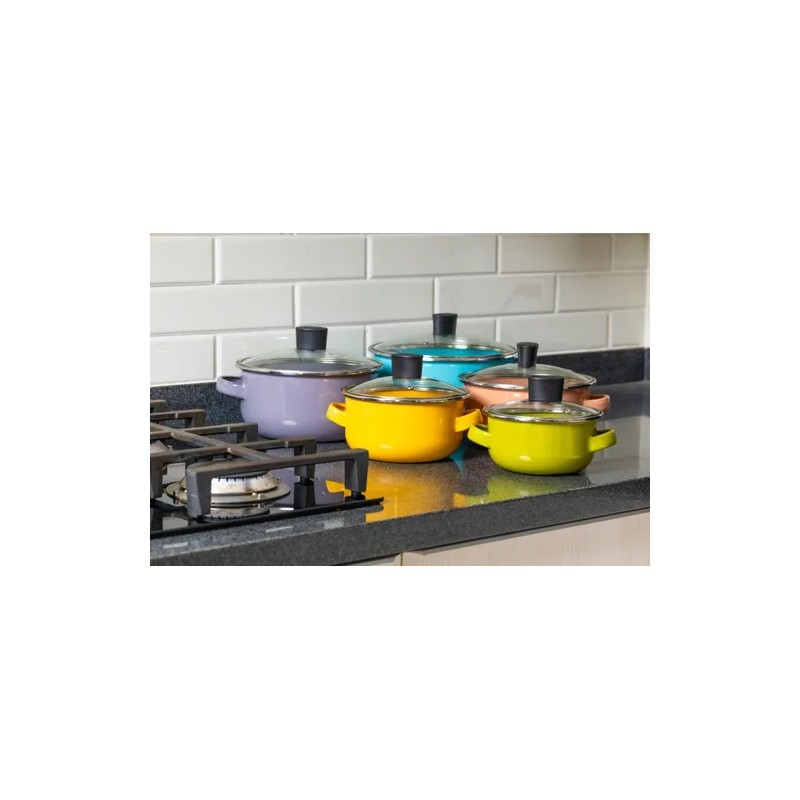 ¡Un básico en tu cocina! con este juego de ollas multicolor elaborado de acero vitrificado Cinsa. Es un material hecho con un alma de acero de carbono y una cubierta de vitrificado Cinsa que crea un producto resistente, seguro y durable. Se elabora mediante un proceso de ingeniería de alta tecnología y de un trabajo hecho por maestros artesanos que conjuntan la habilidad y la calidad en su trabajo