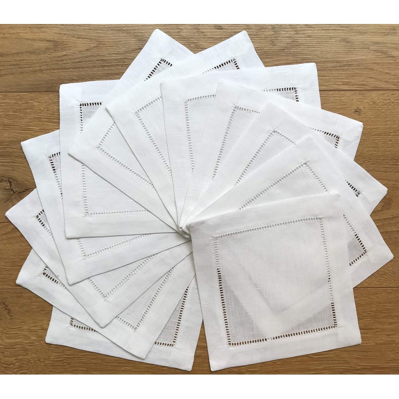 Juego de 50 servilletas de lino blanco de 15,24 x 15,24 cm, servilletas, posavasos, diseño de escalera, 100% lino para bebidas, servilletas de fiesta, paquete de 50 unidades