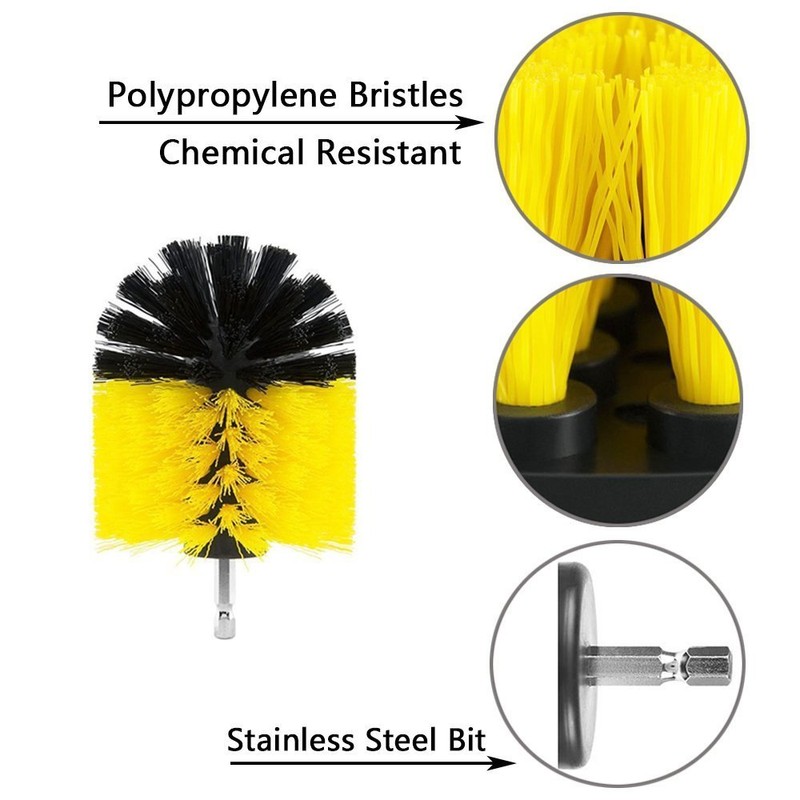 - Este artículo incluye 9 herramientas para tu limpieza. * Casquillo redondo de 2 pulgadas --* Cepillo de cono de 3.5 pulgadas -- * Casquillo redondo de 4 pulgadas -- * Almohadillas de exfoliación rojas de 4 pulgadas -- * Almohadillas de exfoliación verdes de 4 pulgadas -- 1 accesorio de velcro * 1 extensor -* 1 par de guantes del hogar - * 1 textil de limpieza (taladro no incluido). Este kit de 360 cepillos originales para limpiar diferentes tamaños con rigidez media se ajusta a varios propósitos.