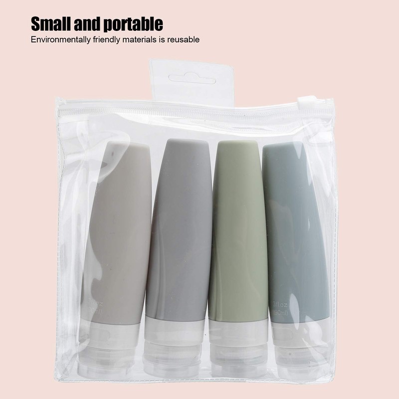 - Cómodo de llevar: para satisfacer las necesidades de los viajes de negocios, el champú, los artículos de tocador, etc. se pueden rellenar. Juego de botellas de viaje de silicona, fácil de usar y cómodo de llevar.