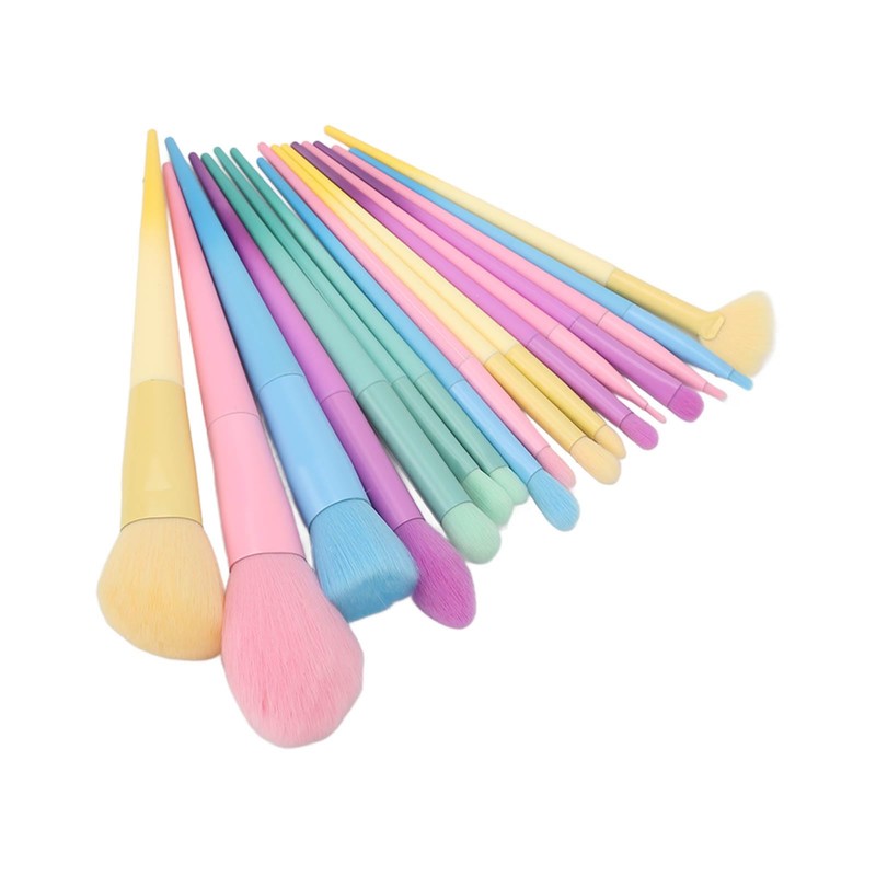 Juego de Brochas de Maquillaje Suaves Candy Colors, 17 Brochas Cosméticas de Tubo de Aluminio para un Acabado Profesional con Colores Suaves y Delicados, Adecuadas para