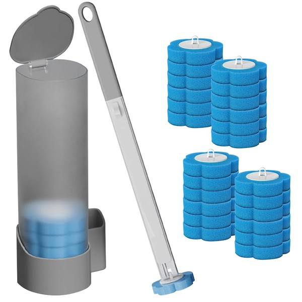 Juego de Cepillo de Inodoro Deshechable con 24 Cabezales y Portacepillos de Inodoro de Almacenaje, Escobilla de Inodoro desechable, Trae Propia Solución Limpiadora, Mantén Limpios los Aseos(Océano)
