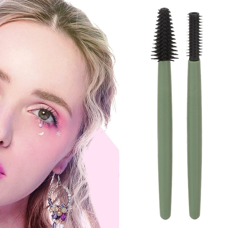 Juego de cepillos para pestañas, 2 modelos diferentes, ligero, compacto, reutilizable, lavable, cepillo de rímel, material de silicona para el hogar (Verde)