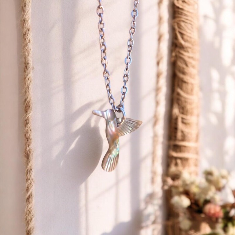- SIGNIFICADO: Usar un collar de colibrí simboliza alegría, esperanza, resiliencia y conexión espiritual. El colibrí, asociado con la ligereza y el amor, también representa la capacidad de superar desafíos, disfrutar del presente y atraer energías positivas. Es un amuleto que inspira belleza y fortaleza.