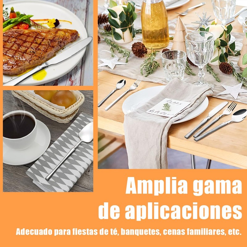 - 【ADECUADO PARA MUCHAS OCASIONES】Este juego de cubiertos ideal para el uso diario, cenas festivas, fiestas, bodas, restaurantes, hoteles u otras ocasiones formales.Este juego de cubiertos puede ser una buena combinación para su otra vajilla.