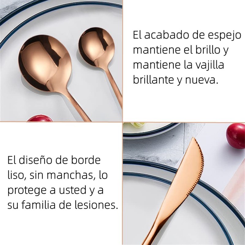 - EXCELENTE MANO DE OBRA: Diseñado para bordes lisos sin manchas para proteger su boca, el pulido de espejo mantiene el brillo para que los utensilios para comer se mantengan brillantes y se vean nuevos, la superficie elegante hace que la limpieza sea más fácil y apto para lavavajillas para ahorrar su trabajo. El cuidado apropiado hará que el juego de cubiertos siempre se vea como nuevo, no use alambre de hierro para rayar las piezas para mantener su superficie lisa.