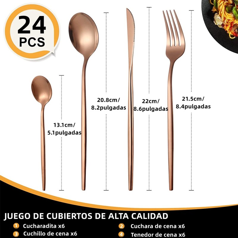 Juego de Cubiertos de 24 Piezas, Juego de Acero Inoxidable para 6, Incluye Cuchillos, Tenedores, Cucharas, Utensilios de Cocina, Vajilla para el Hogar, Restaurante, Apto para Lavavajillas(Oro rosa)