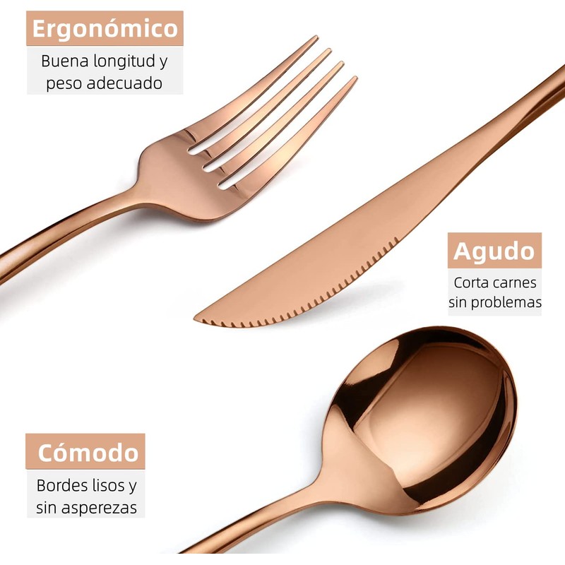 - ACERO INOXIDABLE DE ALTA CALIDAD: este juego de cubiertos está hecho de acero inoxidable de alta calidad que es muy duradero, resistente a la corrosión, no contiene níquel y no produce residuos ni olores como otros materiales. Mientras tanto, su robustez asegura que no se doblará fácilmente, lo que le brinda un uso a largo plazo. Lo más importante es que son aptos para lavavajillas.