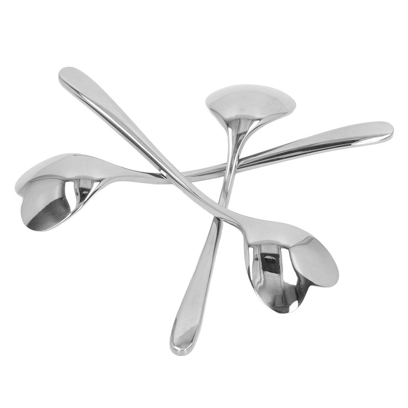 Juego de Cucharas de Postre, Juego de Cucharas de café en Forma de Corazón de 4 Piezas Juego de Cucharas de té de Acero Inoxidable para Ensalada de Frutas y Azúcar para el Hogar
