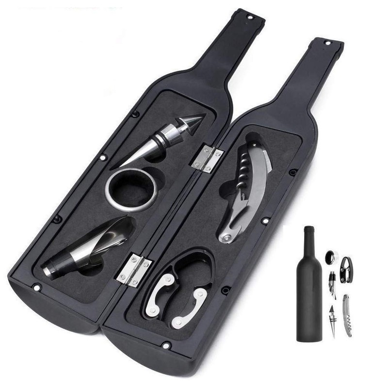 Juego de herramientas de vino con forma de botella, regalo perfecto para inauguración de la casa, juego de 5 sacacorchos