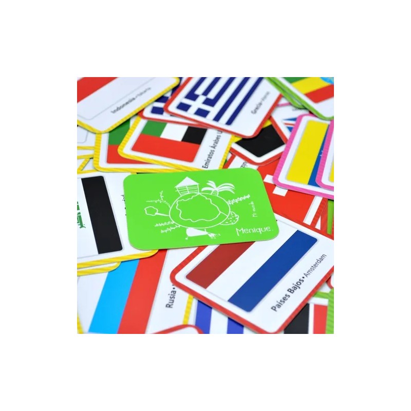 Diseño Atractivo: Cada carta está bellamente ilustrada con los colores y diseños auténticos de las banderas, haciendo la experiencia visualmente estimulante. 🎨