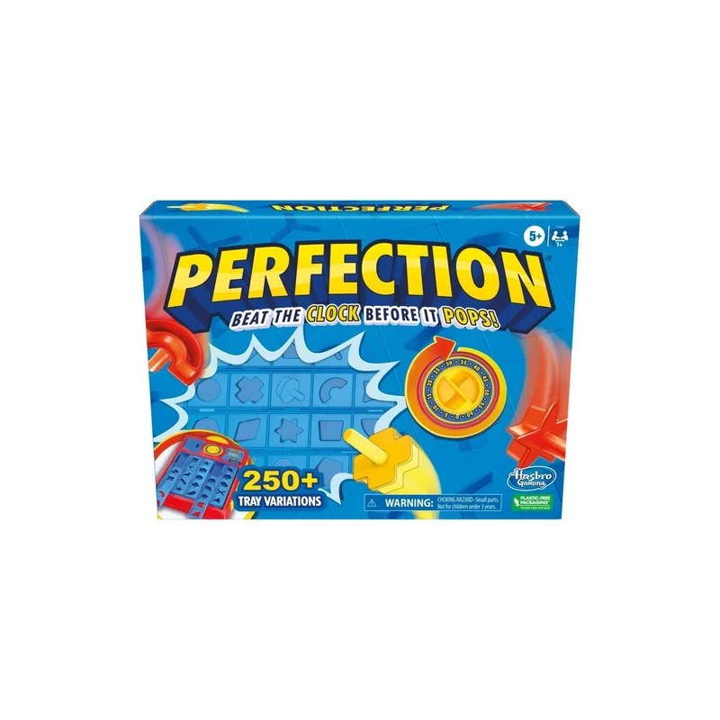 El juego Perfection es un emocionante juego de mesa para niños que reta a los jugadores a encajar todas las formas en la bandeja antes de que el tiempo se agote.