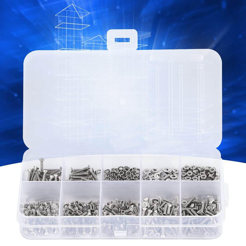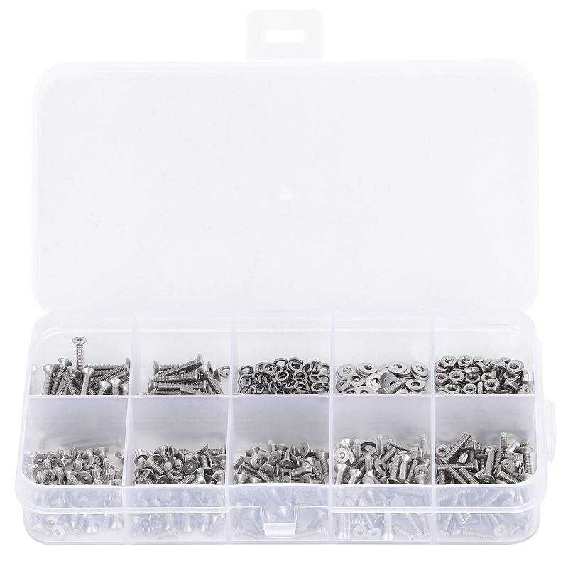 Juego de Surtido de Acero Inoxidable 304 Arandelas de Tuercas Hexagonales de Tornillos de Pernos de Tapa de Enchufe Avellanado de 600 Piezas