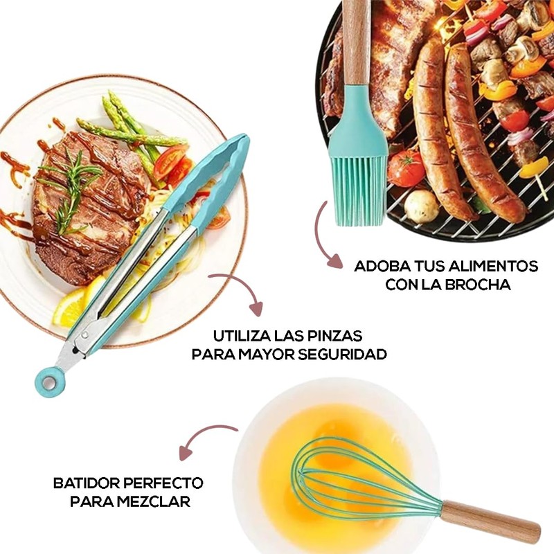 - 💌Material Premium: Fabricados con gel de silicona grado alimenticio, estos utensilios ofrecen una alternativa segura y duradera para tu cocina. Su resistencia a altas temperaturas los convierte en compañeros ideales para cualquier receta que elijas preparar.