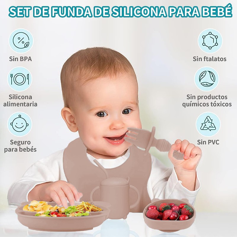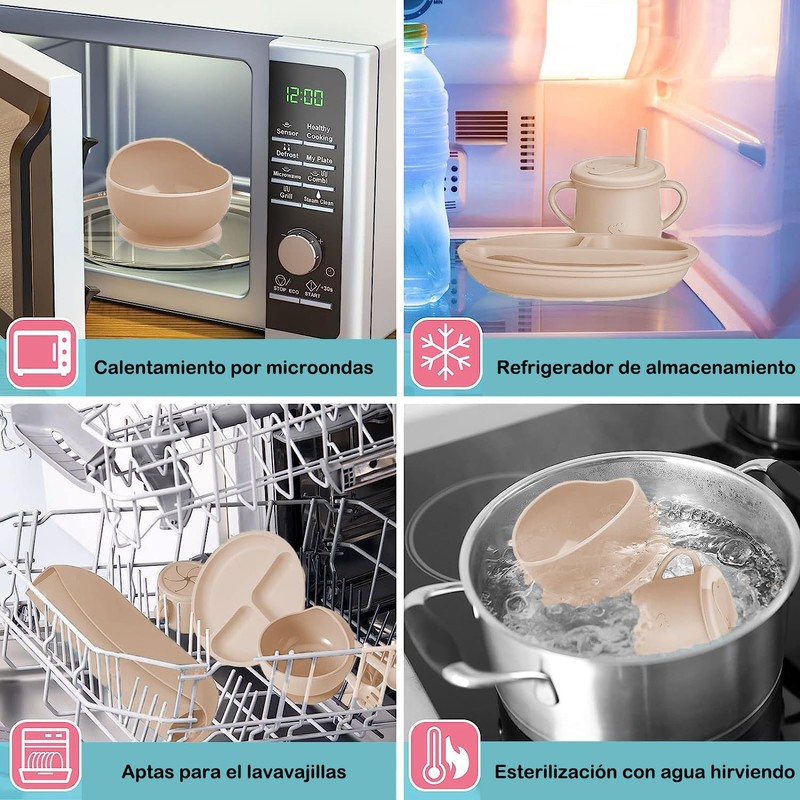 Juego de Vajilla Silicona, Paquete de 8, Beige