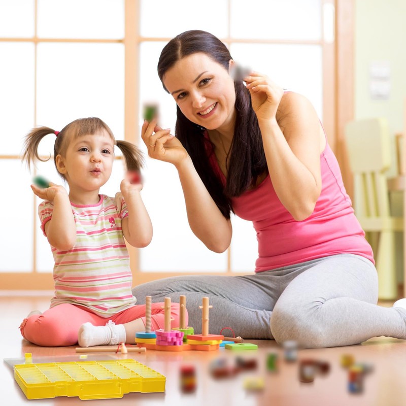 Juexica 2 Pcs 48 Grids Clear Plastic Organizer Box with Removable Dividers Toy Collector Box Transparent Compartment Container Storage for Toy Jewelry Craft Bead (Box Only)(Yellow)