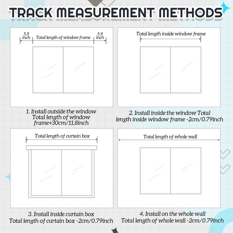 - Complete Packaging and Hardware: this curtain track set includes a retractable curtain slide rail, 22 pulleys, 22 hooks and 22 clips, 6 ceiling mounting and 6 wall mounting, and 2 end covers, providing everything you need to hang curtains; We also offer easy-to-understand installation guides and videos to support you