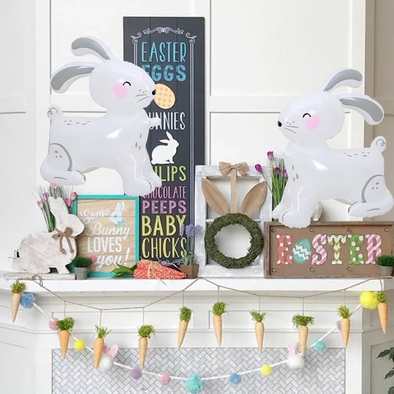 JUFYVO 2pcs 4D Realistic Bunny Airwalker Walking Animal Balloons Easter Foil Balloons Easter Party Decorations Standing Rabbit Ornaments