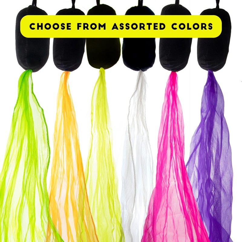 - Features soft fabric poi heads of 85 g each, and 68 cm square chiffon scarves that have all the edges stitched. Weight: approx. 175 g per pair. Come in Bright and assorted colors.