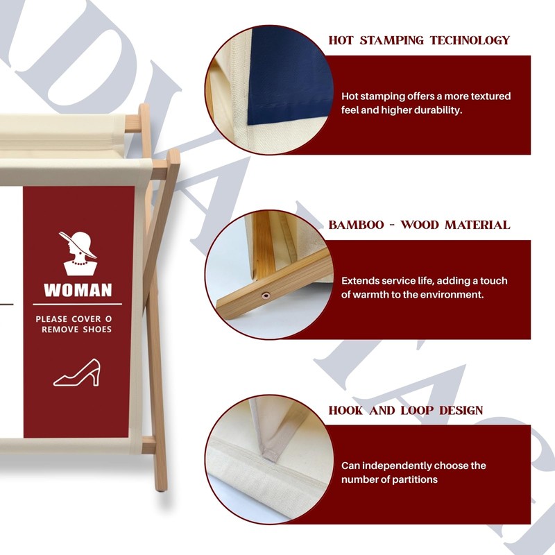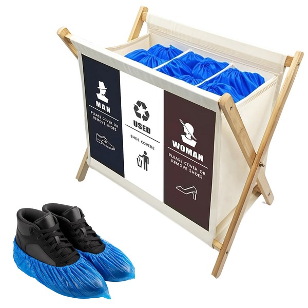 - 【3-Compartment Shoe Cover Dispenser Box】Designed with clearly labeled compartments for "MAN", "WOMAN", and "USED", this shoe cover dispenser keeps entry areas tidy and prevents mix-ups