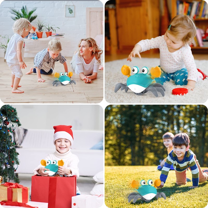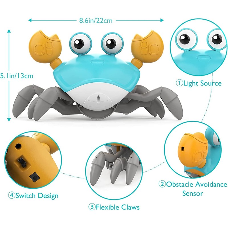Juguete de cangrejo gateante, juguete de cangrejo con música interactiva y luz LED, juguete de desarrollo de aprendizaje Tiktok con movimiento automático para evitar obstáculos, con USB recargable