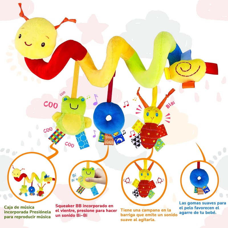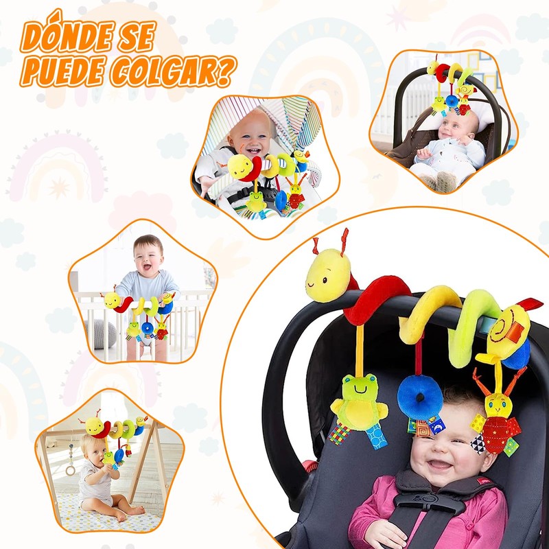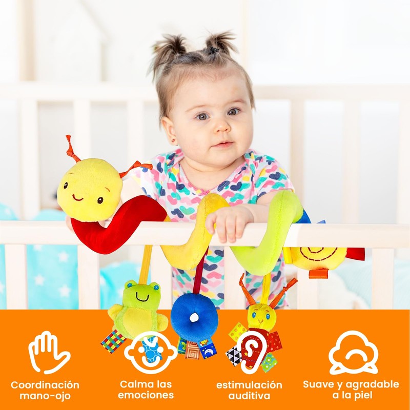 - 【AMPLIA GAMA DE APLICACIONES】Los juguetes de peluche en espiral son extremadamente duraderos, livianos y flexibles, lo que los hace perfectos para entretenerse en casa o mientras viaja, aliviando el aburrimiento de viajar. Se puede colocar en un cochecito, silla de auto, cuna, viaje u otros lugares para acompañar e interactuar con los niños.