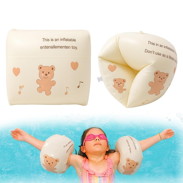 JUGUTA Swimming Aid for Toddlers, Armbands with Unbreakable PE Foam Core for Learning to Swim 1-6 Years, 0-30 kg (Bear Pattern)