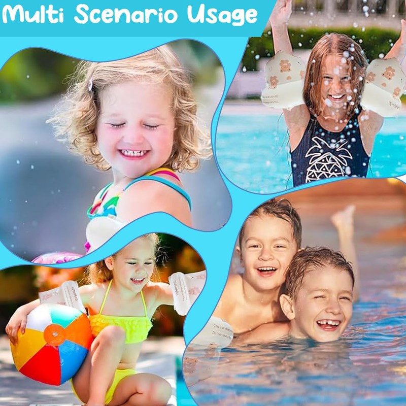 【HIGH QUALITY ECO-FRIENDLY MATERIAL】: These arm bands are made of strong, environmentally friendly PVC, which is non-toxic and gently clings to your child's sensitive skin. Thanks to the use of thick material, they not only offer durability, but also an improved load capacity that always provides your child with support as they grow.