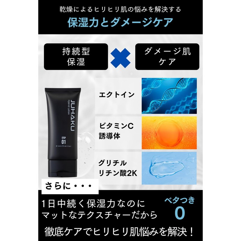 JUHAKU (Medicinal Use) Juhaku Men's Sensitive Roughness Care 2-Piece Set Hybrid Lotion / Heparin Premium Cream (All-in-One x Heparin Similar Ingredients Formulated Cream), 96% No Roughness, Super