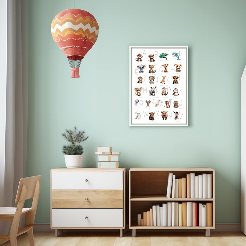 - Children's art frame – ready to hang in a real wood frame, our animal ABC poster is not only a teaching tool, but also a stylish eye-catcher in any child's room