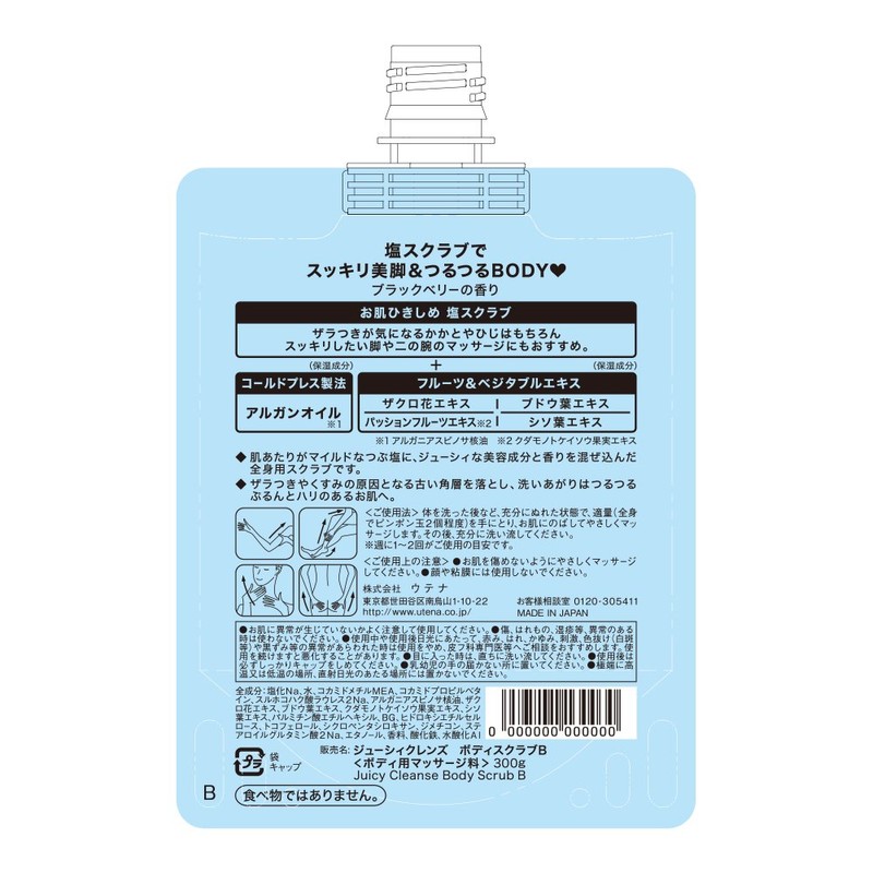 Product introduction leads to inner legs & fast-absorbing body refreshing, the salt sukurabusiri-zu zyu-sixi berries. Salt scrub and cold pressed formula of Argan Oil, and 4 types of fruit & vegetable extracts in the formula. purunto Henna to your skin. Black Berry Scent. ● Please note on use massage gently to the skin being hurt. ● Please do not use on face or 粘膜. ● You can use to remove the abnormal skin caused by the attention to it before first use. ● Protects against scratches, fair, eczema, etc., please do not use this when you have. ● Do not use after the sun, redness, puffy, itching, irritation, Color (白斑, etc.) and getting other abnormalities with the show up when you use the stop shedding, skin doctors butterflies to the vet, etc. Consult your usual size. You can continue to use the worse over time. ● When you are in your eyes, rinse immediately. ● After Use, be sure to secure the cap screw. ● Infant Away From You Put Them To. ● Please place, direct sunlight Do not place the place exposed and in the extremely high or low temperature.