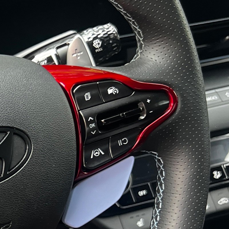 JUIVEEL Red Style Steering Wheel Trim Control Button Cover Compatible with Hyundai Elantra CN7 N Hyundai KONA 2019-2023 Accessories