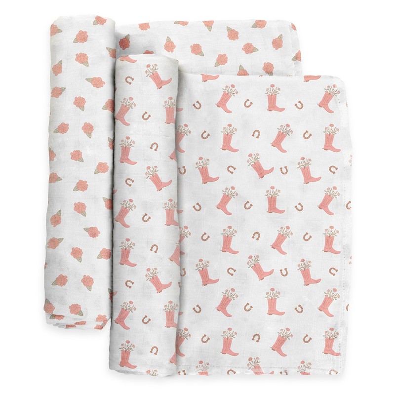 JuJuBe x Studio Oh! Baby Essentials Swaddle Blanket Set - Soft, Comfortable, Neutral Newborn Baby Swaddle Blankets for Baby Shower & Baby Registry - Nursery Essentials - Bloomin Boot