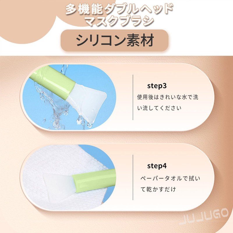 JUJUGO マスクブラシ シリコン ブラシ 2本セット フェイスマスク用 洗顔・スキンケア・メイクに 柔軟ヘッド