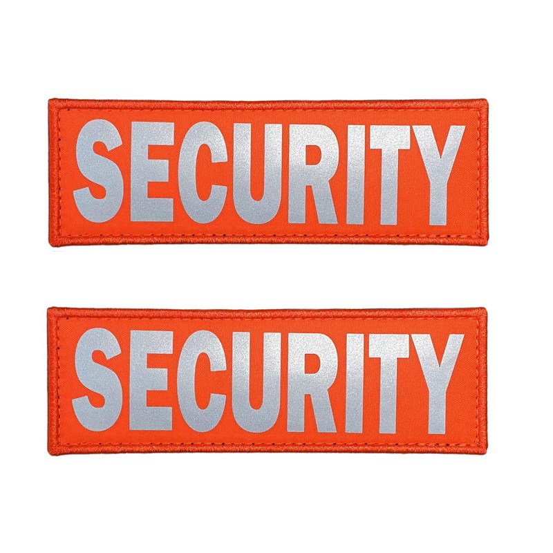 JUJUPUPS Orange Reflective Dog Patches 2 Pack Service Dog,in Training,DO NOT PET,Patches with Hook and Loop for Vests and Harnesses(Security, 5x1.5 inch)