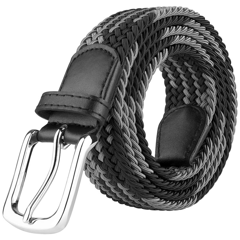 JUKMO Elastic Braided Belt, Stretch Woven Belt in Gift Box (Black/Gray, Medium)
