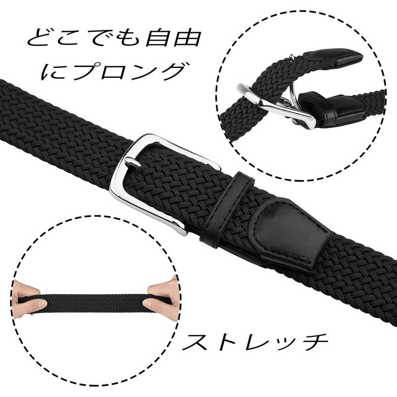JUKMO Men's Casual Golf Belt, Elastic Braided Belt, Mesh Belt, Stretch, Gift Box Included, Black