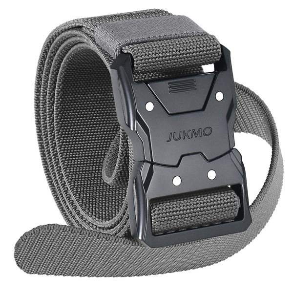 JUKMO Quick Release Tactical Belt, Military Work 1.5" Nylon Web Hiking Belt with Heavy Duty Seatbelt Buckle (Grey, X-Large-for Waist 46"-50" (Length 57"))