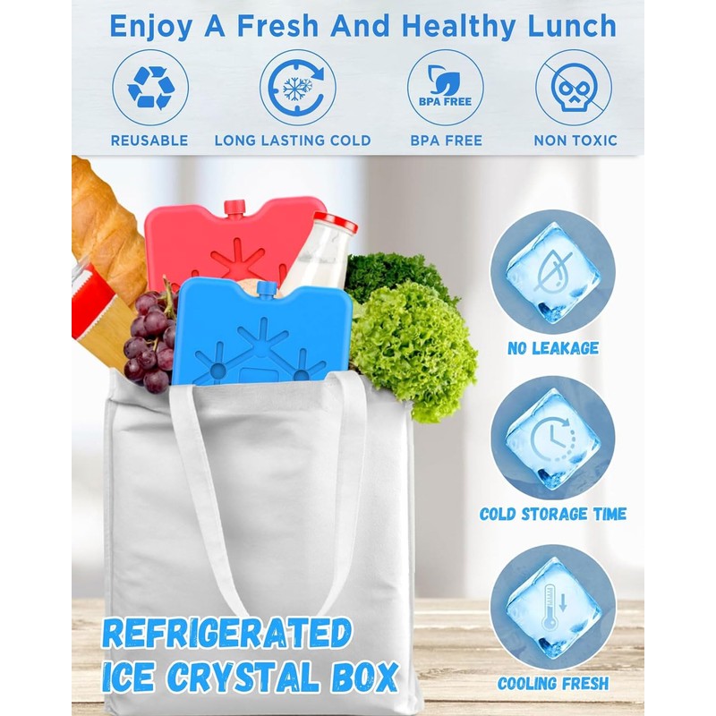 Reusable: Our ice packs for cool bag can be used repeatedly. Unlike ice cubes, cooler bags stay frozen longer and do not turn into a puddle of water when melted that does not affect the sandwiches or other food next to it. They are a great alternative to conventional ice cubes.
