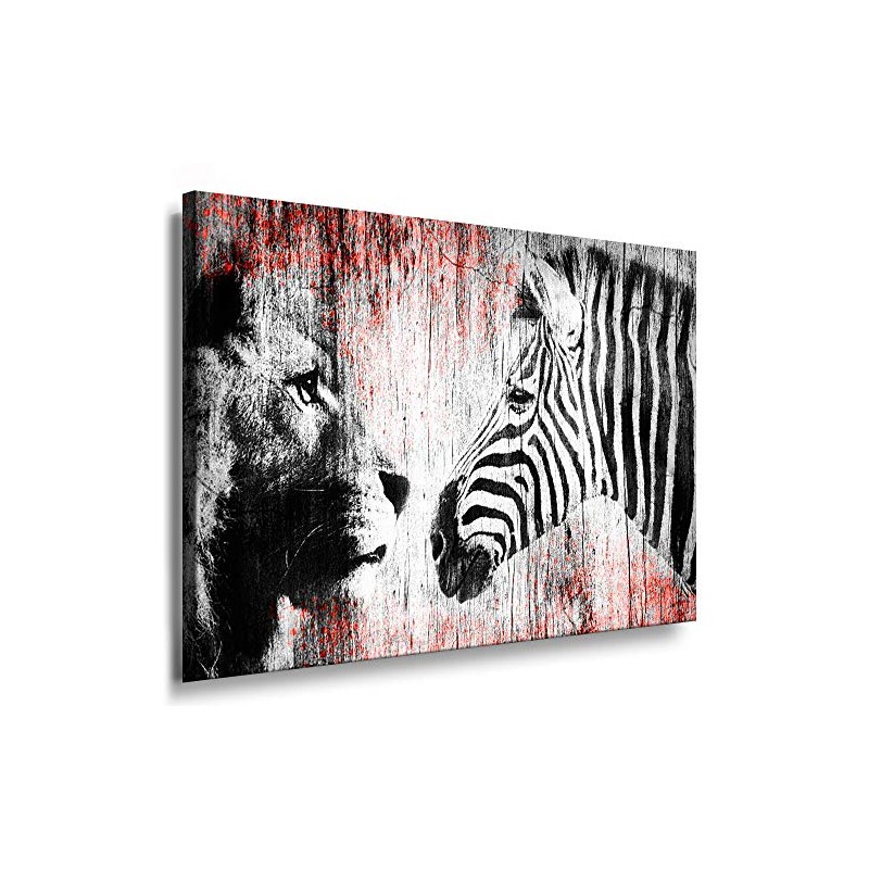 Julia-Art - Pictures Zebra, Lion Canvas with Stretcher Frame 40 x 30 cm Canvas Picture XXL Wall Picture Animals Art Prints Animal Worlds Picture Wall Design Wall Decoration c-642v-204