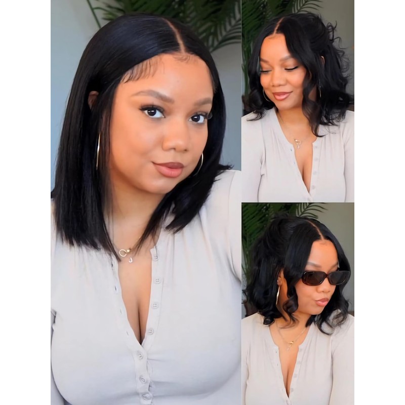 - Glueless wig Pre Cut Lace BOB Wigs : 7x5 Upgrade Larger Lace Closure Wigs Human Hair is more invisible, Soft and thin, easy to melt. Can make middle part side part as you want. transparent lace wigs, blends your skin perfectly. elegant and natural